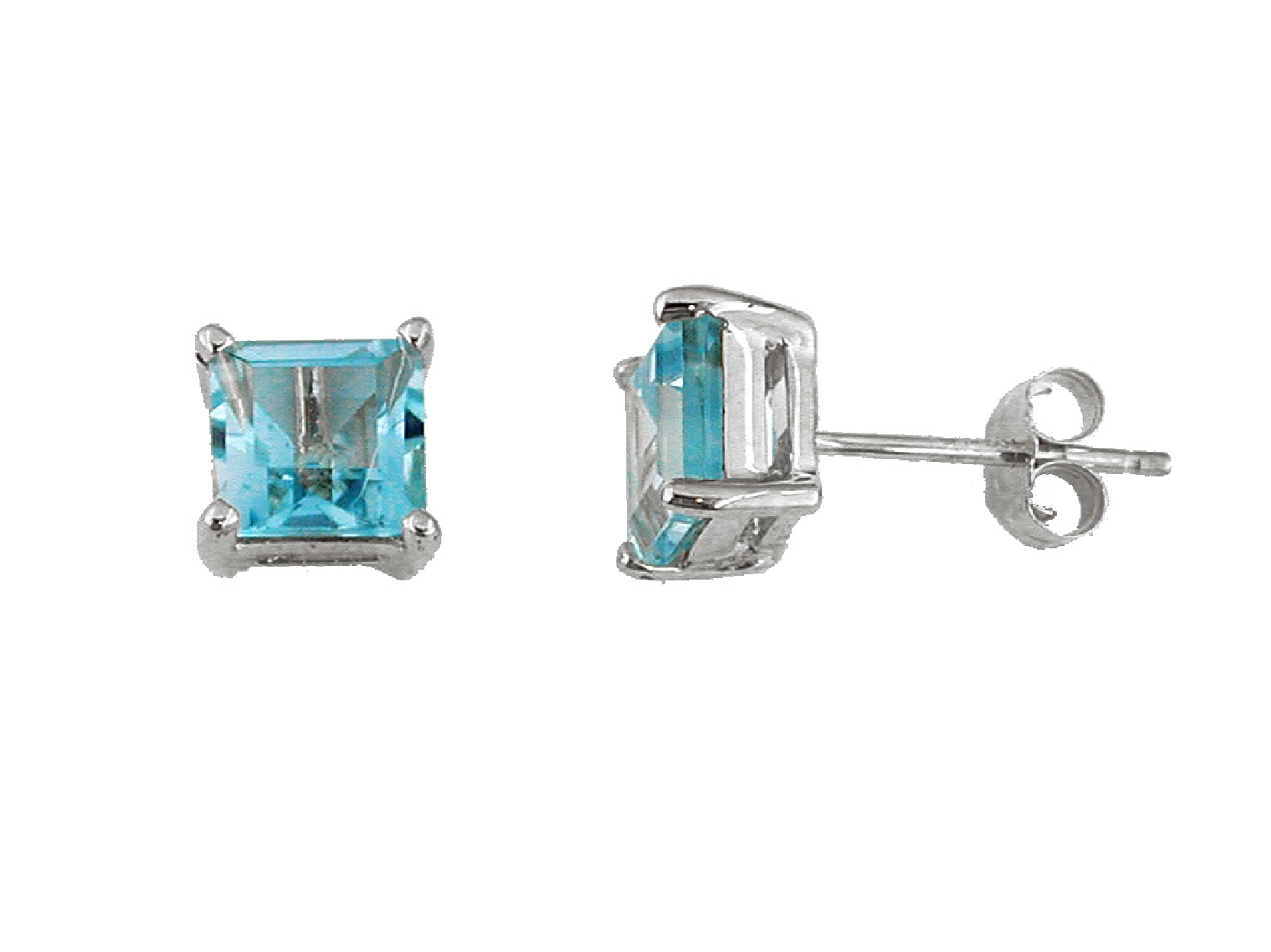 14K White Gold Square 2.5CT Blue Topaz Stud Earrings with Tension Backs