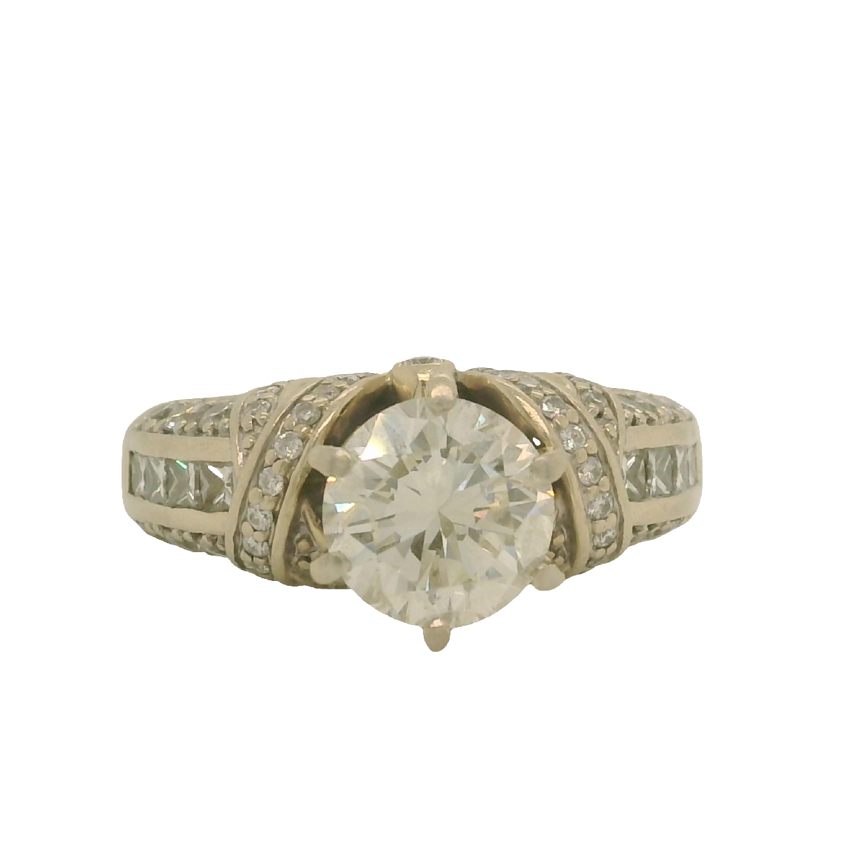 14K White Gold Diamond Engagement Ring in Vintage Setting Size 7.25 2.01 CT RBC VS 2/K APPRAISAL ON FILE
