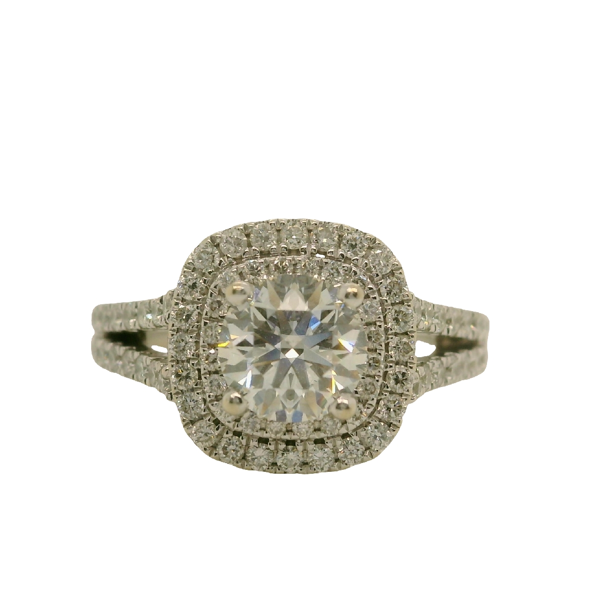 14K White Gold Vera Wang Engagement Ring with Double Halo and Split Shank Size 7 1 CT Center 0.65 CT Accents