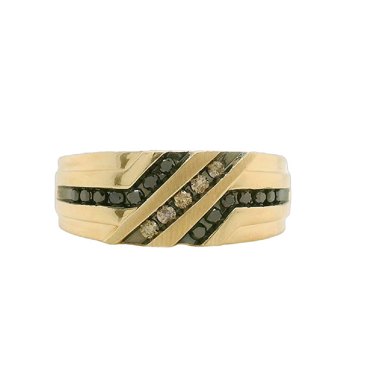 10K Yellow Gold Black and Champange Diamond Men s Band .35cttw Size 10