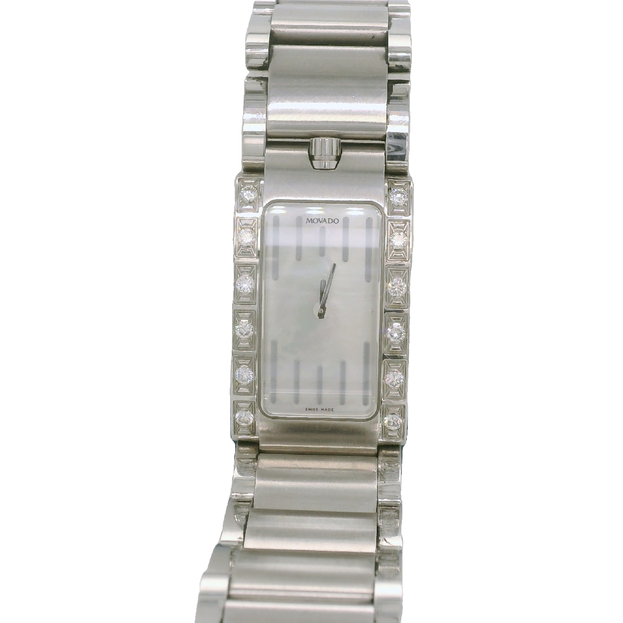 Movado EllipticaWatch in Stainless Steel with Diamond Bezel on Metal Band