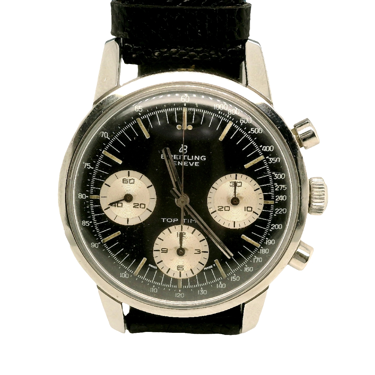 Breitling Circa 1960s Reverse Panda Tri-compax Top Time Chronograph Stainless Steel