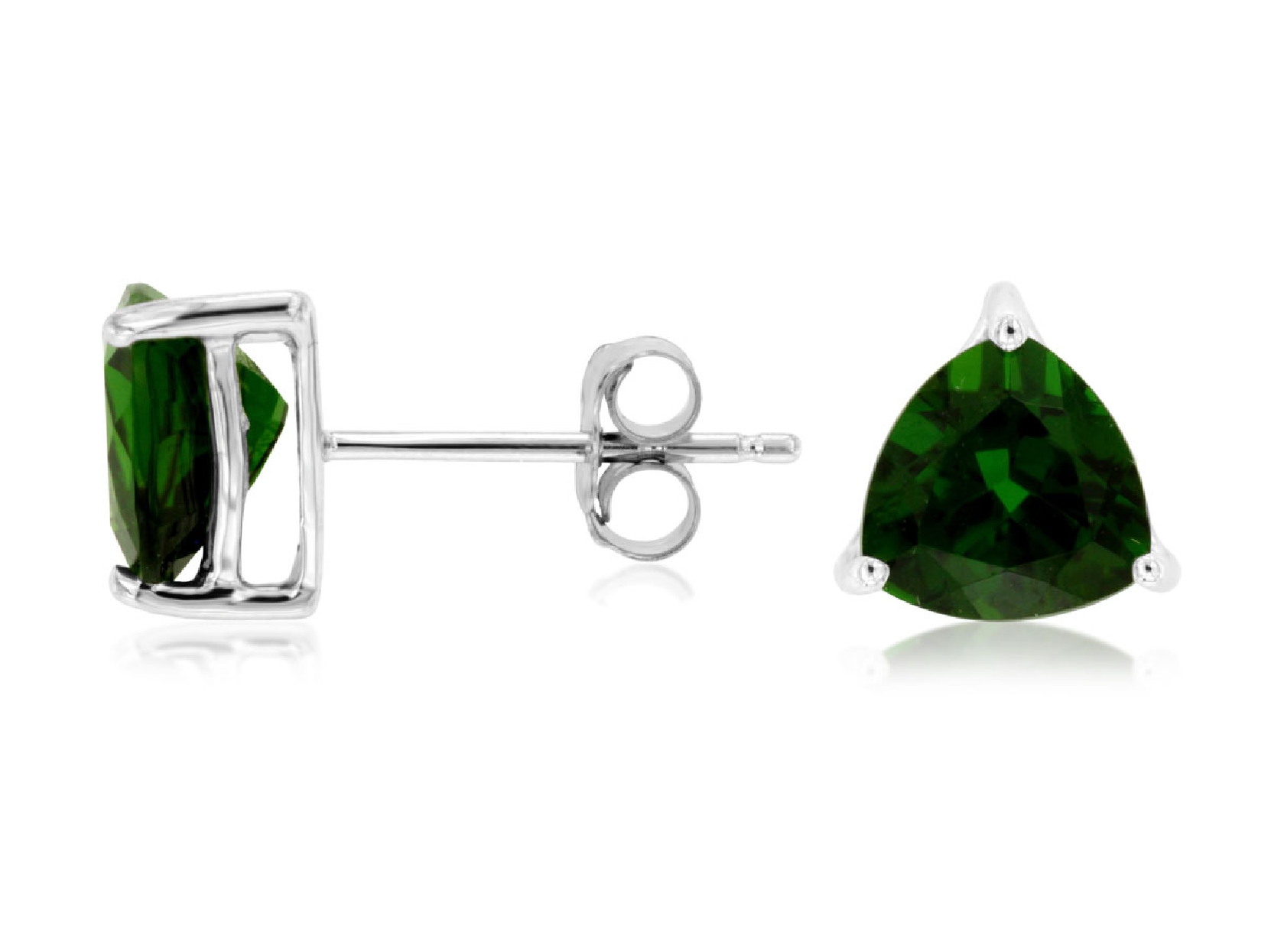 14K White Gold Trillion Russalite & Diamond Earring Studs 2.50 ct